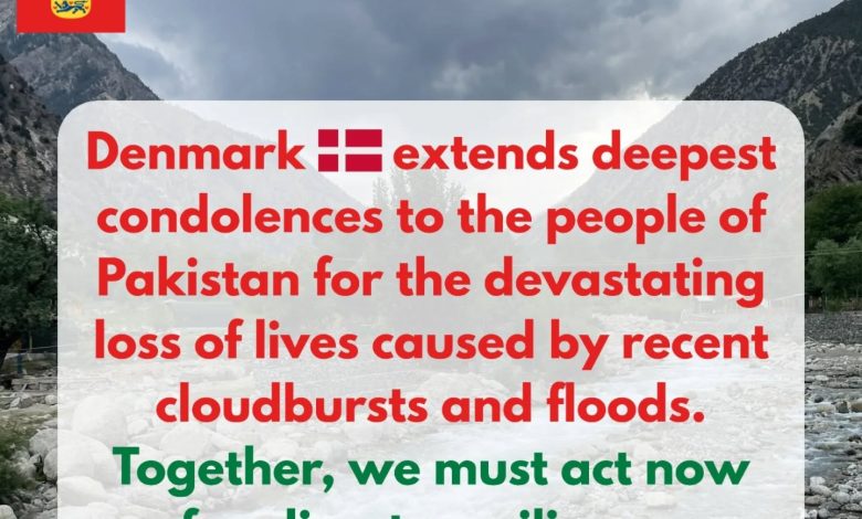 Denmark has expressed its condolences to the people of Pakistan following the recent tragic loss of life caused by severe cloudbursts and flooding. The Embassy of Denmark emphasized solidarity with Pakistan as the nation grapples with the consequences of extreme weather events.
